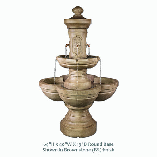 View full detailsRimini Fountain – Graceful Outdoor Tiered Water Feature Dimensions: 68"H x 48"WFinish Shown: Spanish ClayMaterial: Fiber-Reinforced Cast Stone Conc...